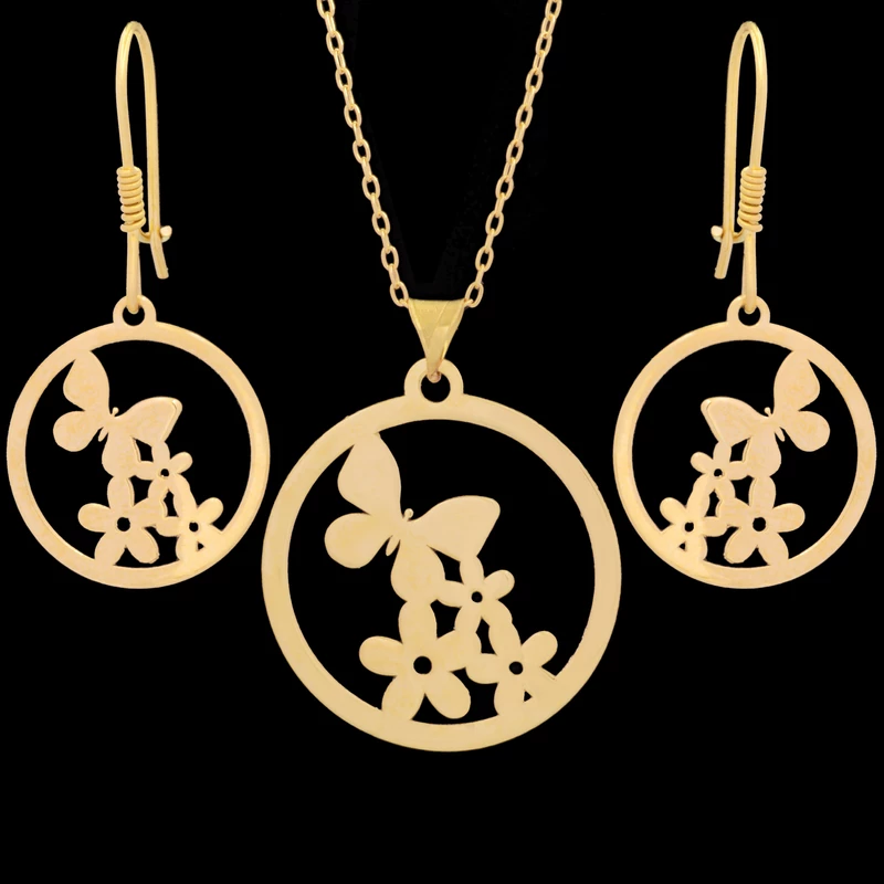 نیم ست طلا 18 عیار زنانه طلای مستجابی مدل گل و پروانه کد 04